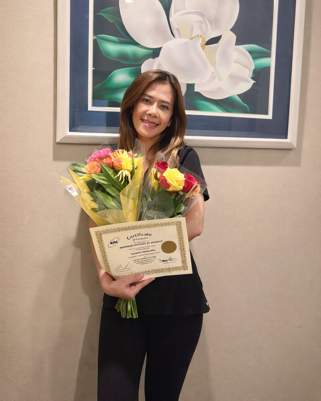 Jarawi brings a unique blend of Eastern and Western massage training that few therapists in Carlsbad can match. She earned her certification from the prestigious Andaman Institute of Massage and completed a comprehensive 511-hour massage school program in California, successfully passing the CAMTC licensing examination. Beyond her California credentials, Jarawi dedicated an additional 210 hours to advanced training at the Thai Union of Thai Traditional Medicine Society in Thailand, deepening her mastery of traditional Thai massage techniques passed down through generations.